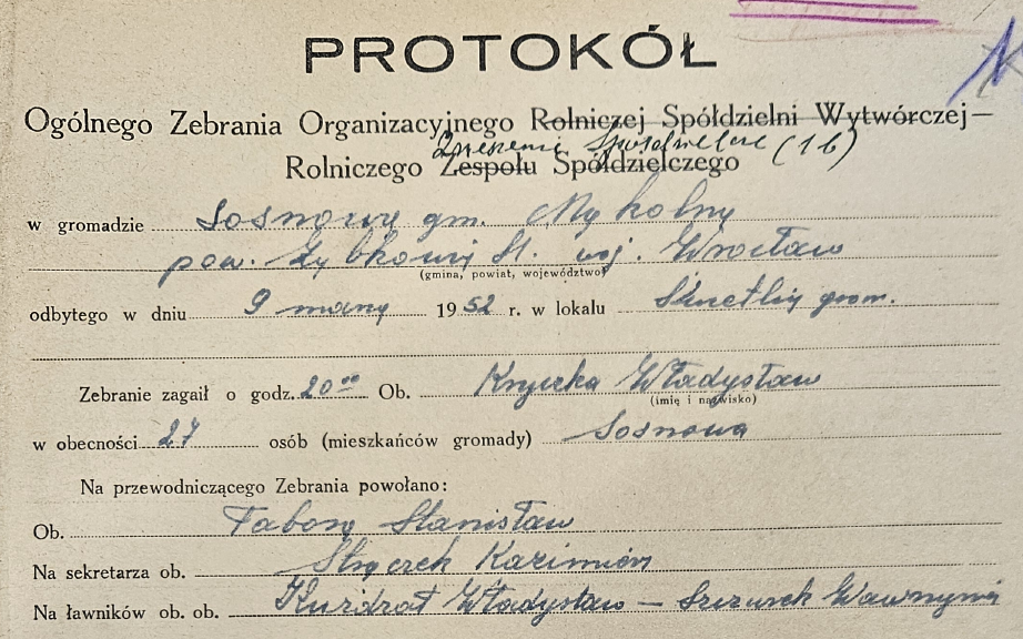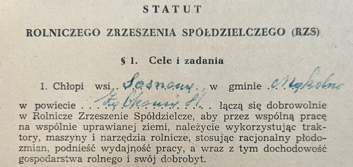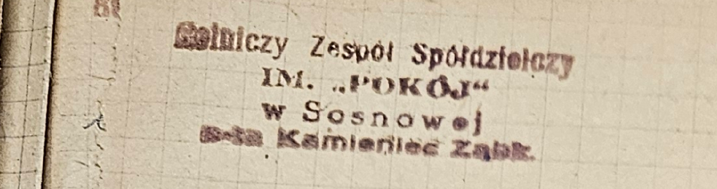 Co ciekawe, pieczątka używana przez Spółdzielnię w Sosnowej to Rolniczy Zespół Spółdzielczy, podczas gdy wszystkie dokumenty - akta sądowe, protokoły, statut itd. - mówią o Rolniczym Zrzeszeniu Spółdzielczym.