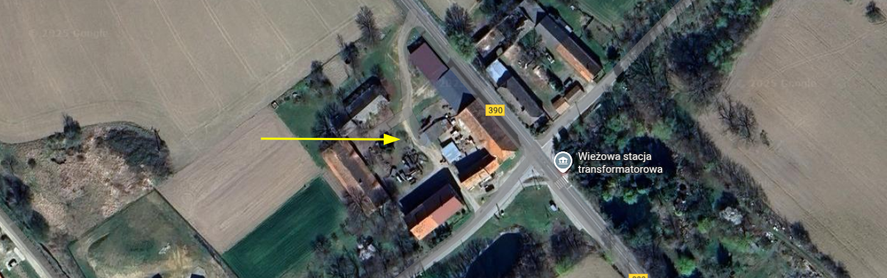 Lokalizacja bazy Spółdzielni na mapie satelitarnej (oznaczona żółtą strzałką).